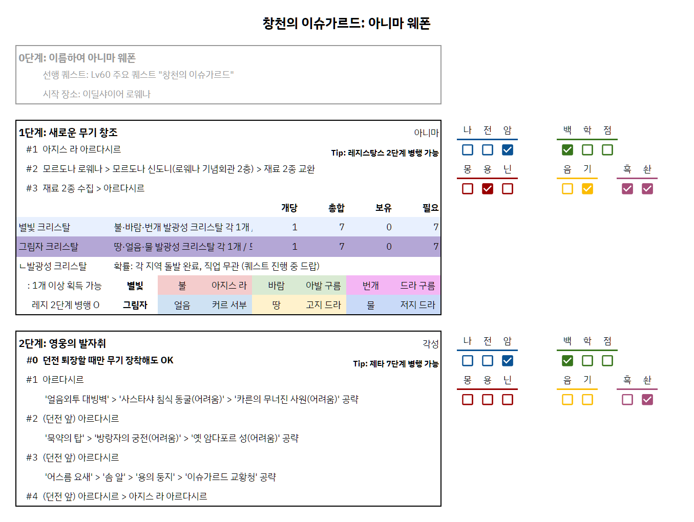 #나의_고대무기_진행도 해시태그로 사용중인 이미지를 공유해주시면 제작자가 뿌듯해합니다. 😄