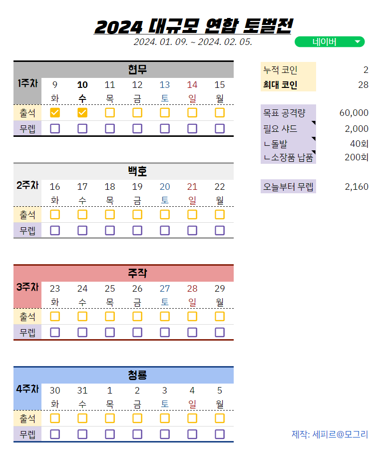 | [종료] v6.4 실력 증명 이벤트 징표 계산기 #세피시트 (0) | 2023.11.01 |